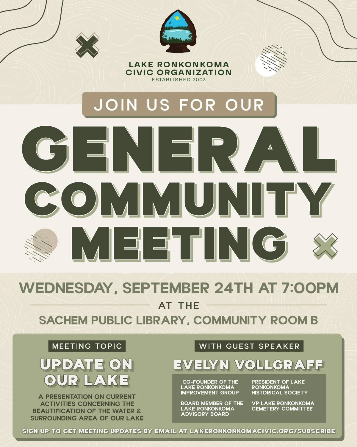 We’ll be holding our General Community Meeting at the Sachem Public Library.